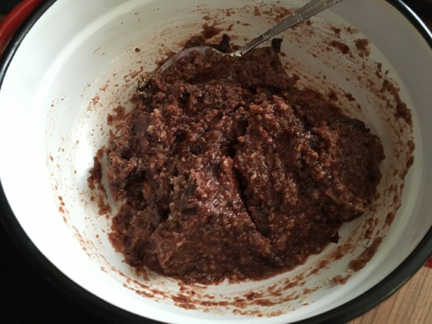 - nuca macinata amestecata cu zahar si cu albus de ou batut spuma