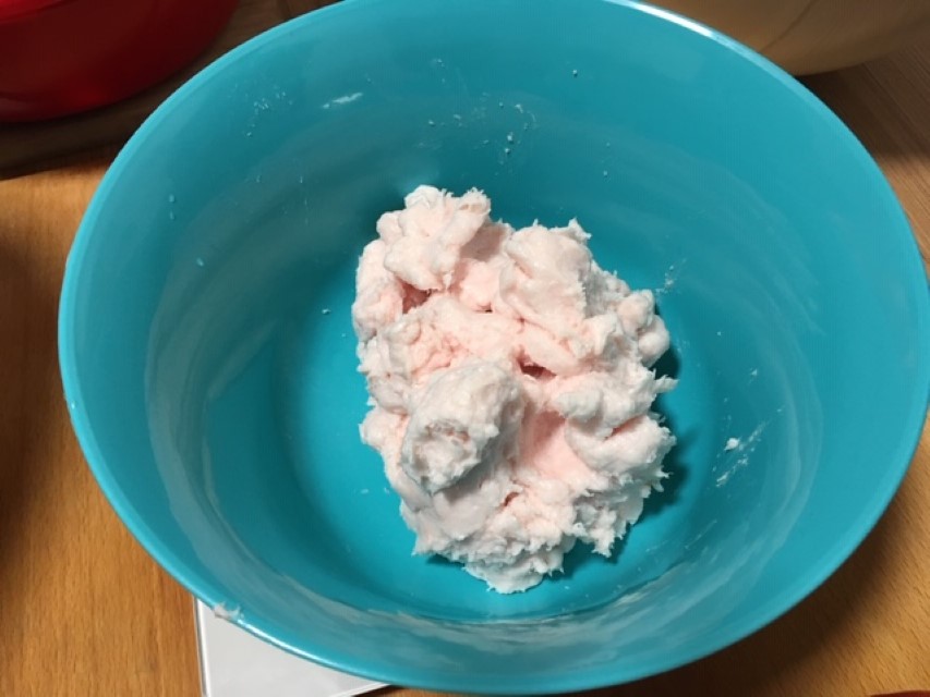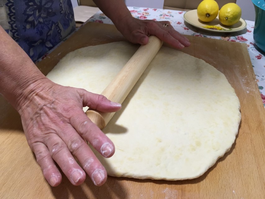 - Amestecam ingredientele pentru aluat cu faina. Vom vedea ca nu se leaga aluatul si atunci incepem sa adaugam vin alb pana obtinem un aluat o idee mai vartos (deci nu prea moale ca nu se poate intinde bine).