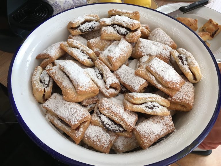 Optional, haiosul se poate face si cu un amestec de magiun de prune cu nuca macinata, branza dulce sau cu nuca amestecata cu albus de ou batut.