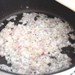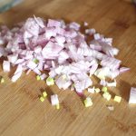 Ceapa se curăță și se taie mărunt.