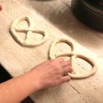 Împărțim aluatul în patru părți egale și începem să formăm covrigii.